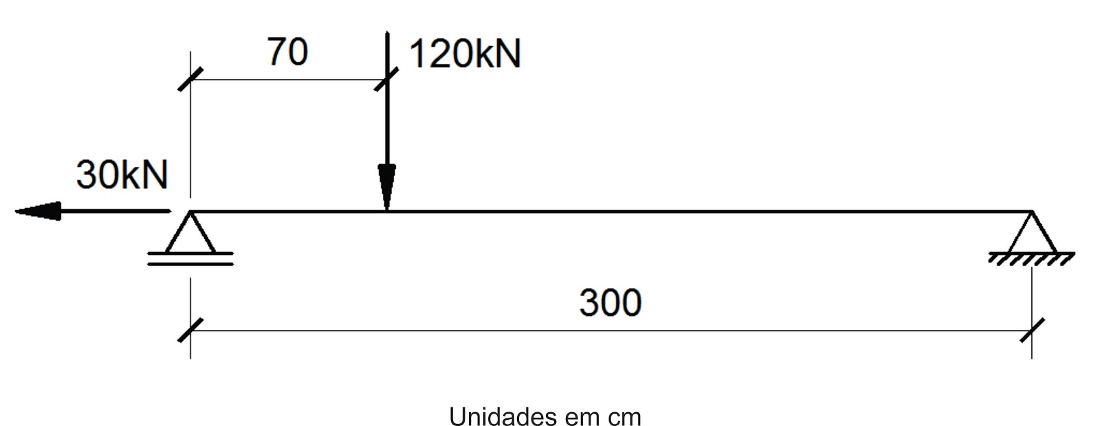 A viga com seção "T" recebe o esforço externo conforme o esquema abaixo: